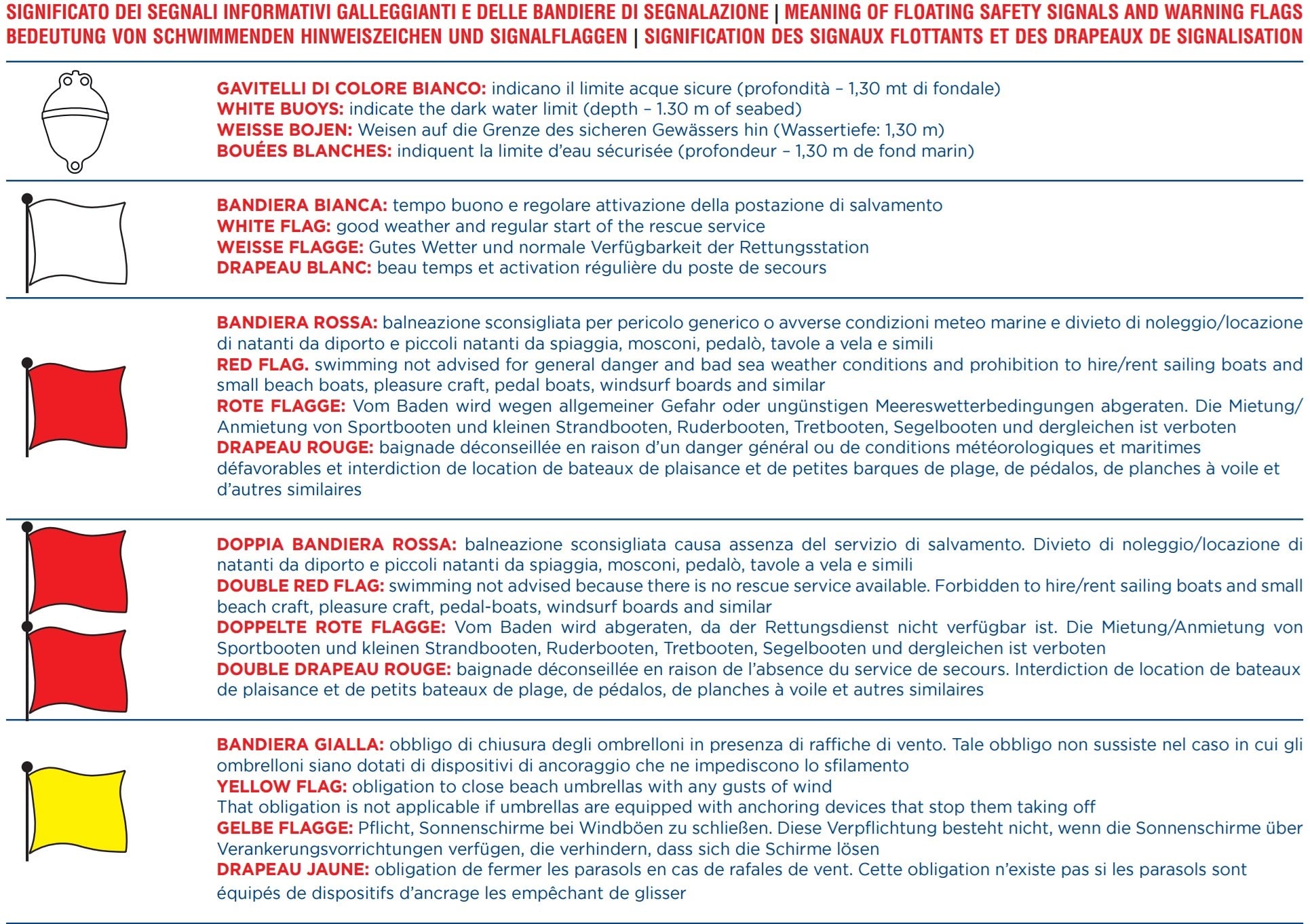 Guida alle Bandiere di Segnalazione e ai Galleggianti Informativi per una Balneazione Sicura